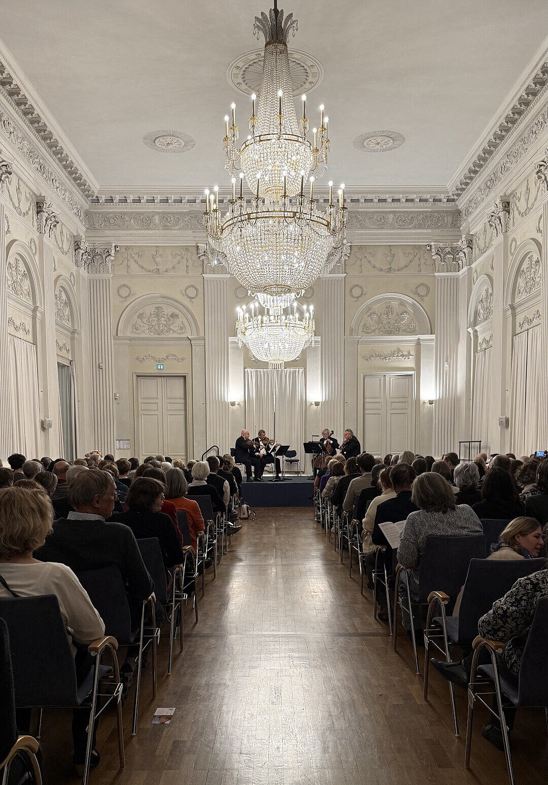 November 2025 – Wir blicken wir mit großer Dankbarkeit auf das wundervolle Benefizkonzert zurück, das am 27.11.2025 gemeinsam mit der Theodor-Hellbrügge-Stiftung stattfand. Schon vor Konzertbeginn durften wir bei einem kleinen Empfang viele inspirierende Gespräche mit unseren Gästen führen – und diese konnten sich ausführlich über unsere Spendenprojekte informieren. Im Anschluss erfüllten das junge Nachwuchs-Cello-Ensemble Cello Plus und das renommierte Prager Stamitz Quartett den prunkvollen Max-Joseph-Saal der Münchner Residenz mit wundervoller klassischer Musik.