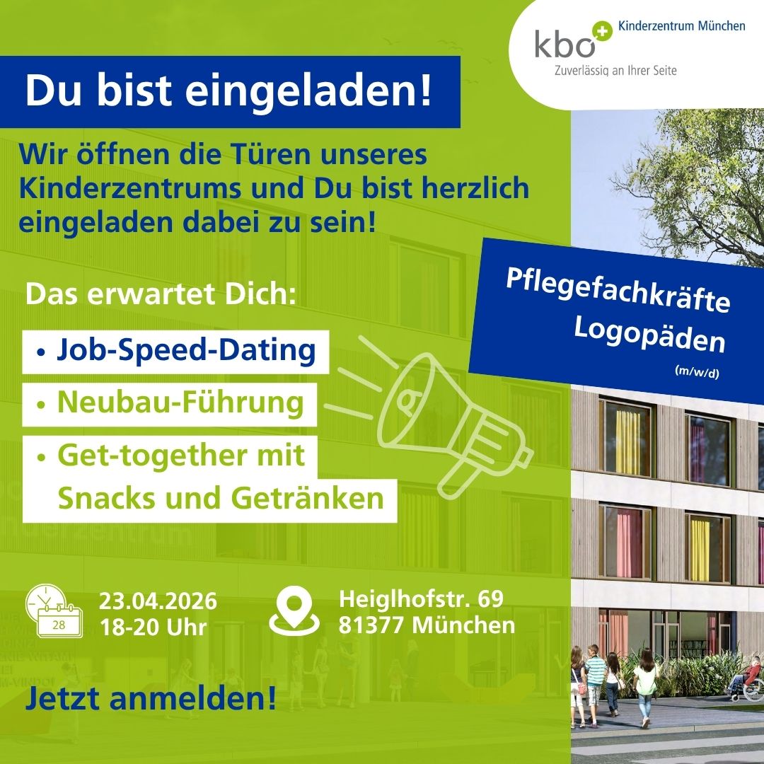 Sichere Dir Deinen Platz für diese besondere Gelegenheit, das kbo-Kinderzentrum und unser Team kennenzulernen. 🚀 Wir freuen uns darauf, Dich persönlich zu treffen!
